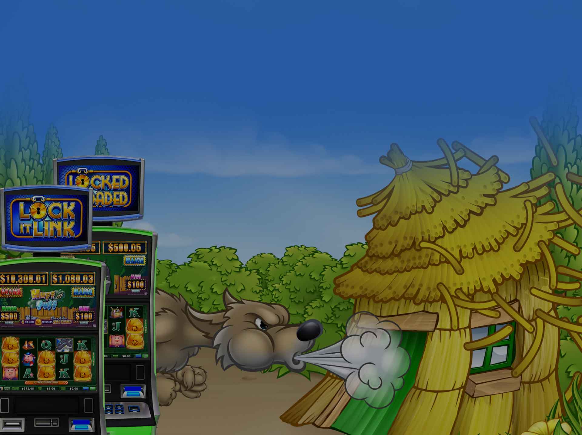 Inspired by the classic “three little pigs” story, Huff N Puff is a high-energy slot that’s all about building houses and then watching the Big Bad Wolf blow them down for big wins. The game is known for its Hat Feature, where landing enough hat symbols can upgrade houses from straw, to wood, and finally to brick. When the wolf appears and huffs and puffs, he can award cash prizes and bigger payouts from the sturdier houses. Huff N Puff is popular with players who enjoy high-volatility slots, lots of sound and animation, and the potential for big bonus-round hits from a single good spin.